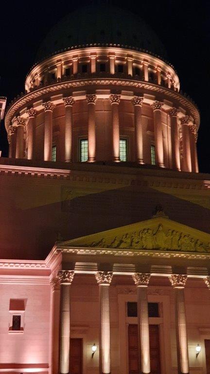 Kurz vor 23 Uhr kommt es zu einem Abklang der Fassadenbeleuchtung in aufeinanderfolgenden, dunkler werdenden Blautönen, bis alles zu einem letzten unisono in einem warmen Weiß aufstrahlt.