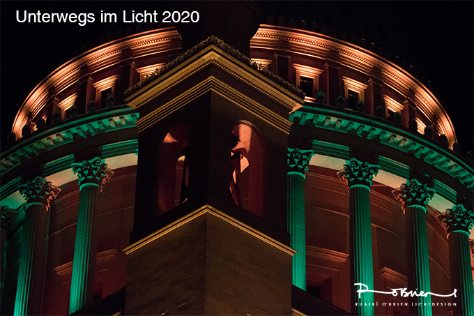 Programmablauf der Gesamtveranstaltung „Unterwegs im Licht 2020“ abgestimmt und mit Bezügen zum Inhalt des Themenjahres „Zäsuren deutscher Geschichte“ erweitert. In die Auswahl, der mit Licht betonten Stellen wurden auch Orte der Erinnerung mit einbezogen, die als bewusstes Statement über den gesamten Abend nur neutral-weiß beleuchtet werden und sich nicht innerhalb des dynamisch ändernden Farb-Licht-Konzeptes befinden. Als wichtige Gedenkorte werden sie mit Licht betont, bleiben in ihrer Aussage aber unverändert.